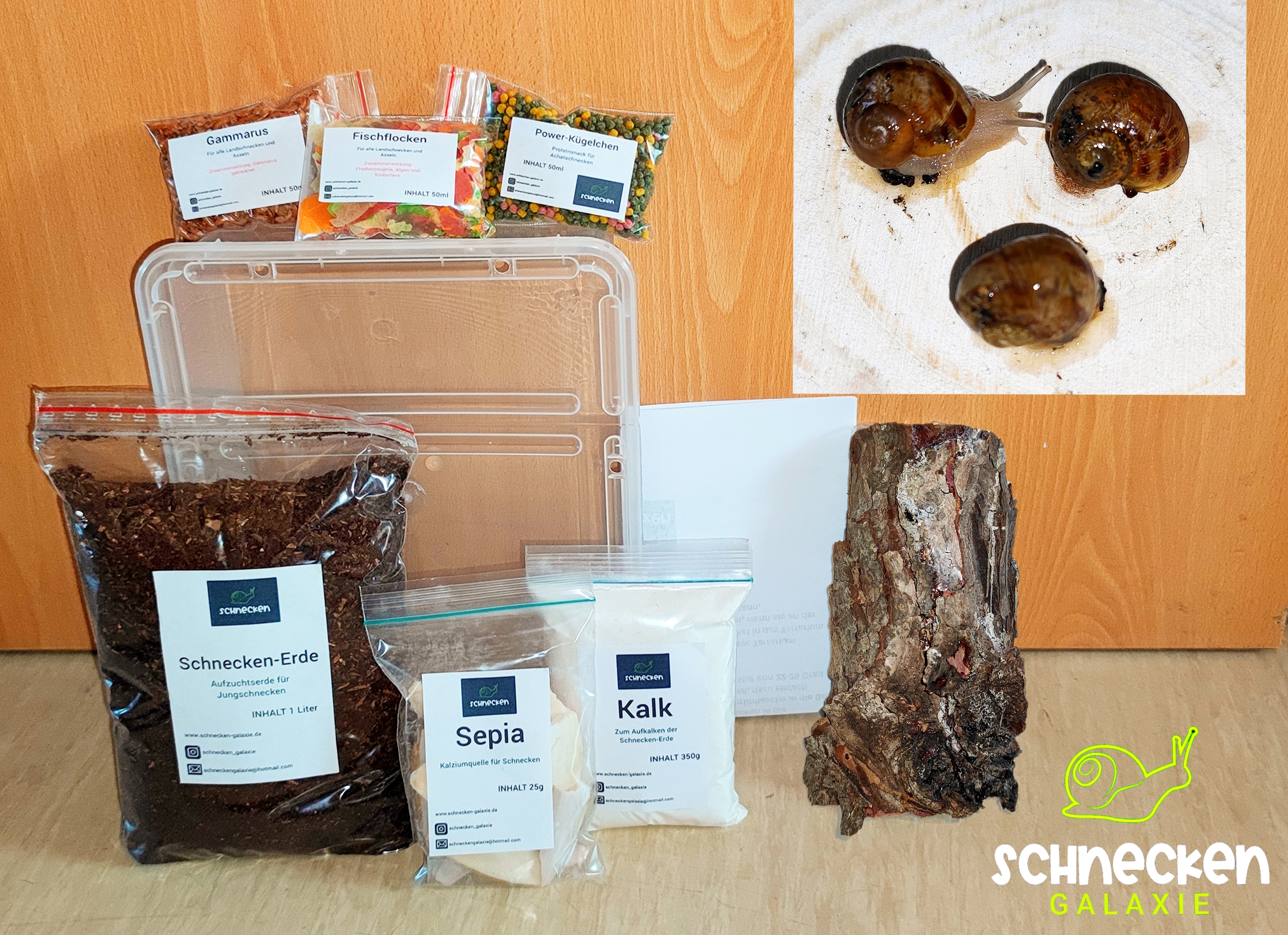 Hier erhaltet Ihr ein komplettes Starterset mit 3 Jungtieren der Art Cornu aspersum maxima. Dies ermöglicht euch den Einstieg in die Schneckenhaltung, so könnt ihr selbst zusehen wie eure Schnecken wachsen. Das Set enthält alles was man für den Anfang benötigt. Ideal für Einsteiger und Kinder geeignet mit ausführlicher Anleitung.