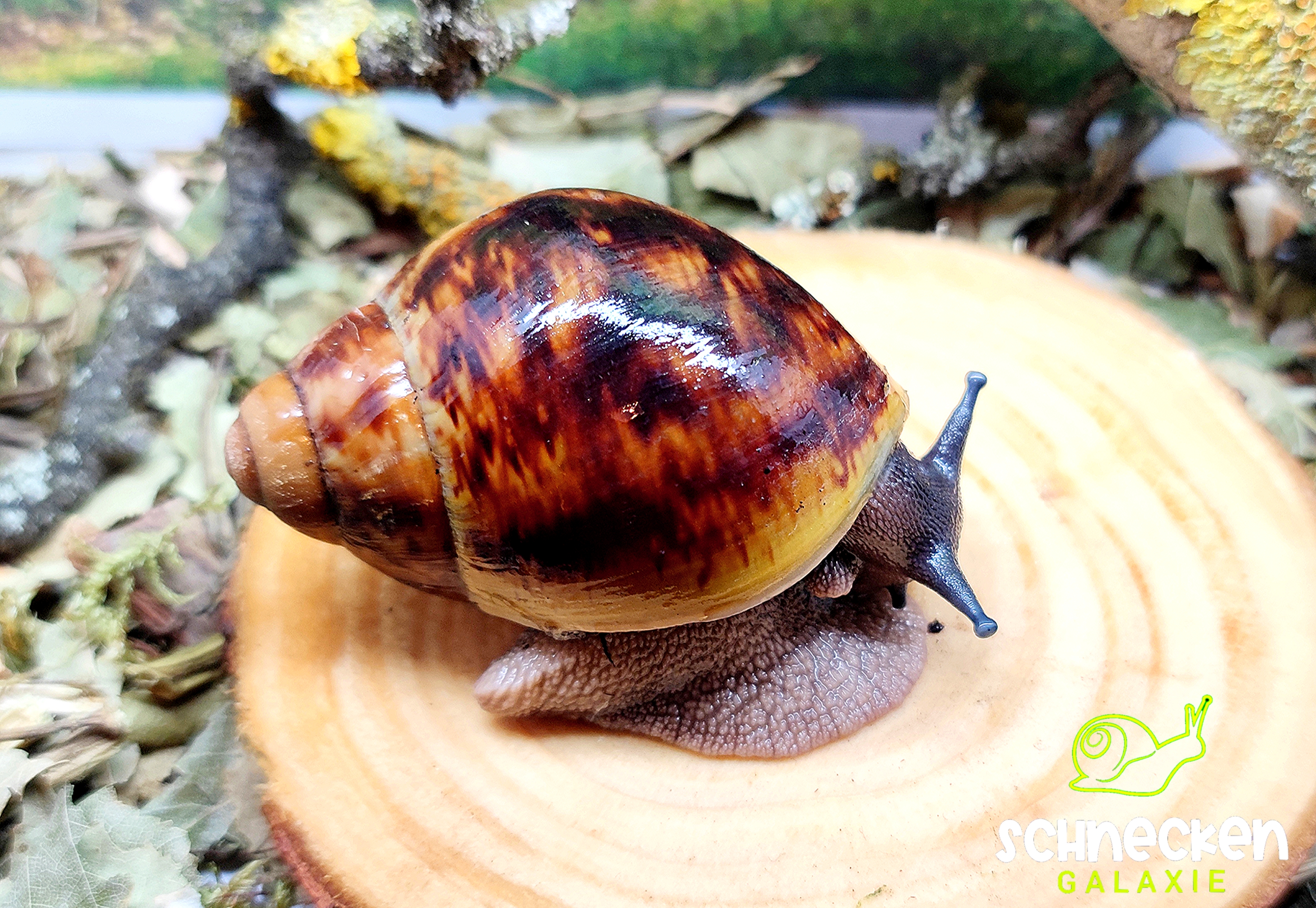 Die Archachatina marginata ovum XXL sollte in einer Gruppe gehalten werden. Da die Tiere auf eine Größe von bis zu 22 cm heranwachsen können, sollte das Terrarium entsprechend groß sein das sich die Tiere wohlfühlen und Platz haben. Es sollte ausreichend Bodengrund im Terrarium sein. Dieser muss unbedingt gut aufgekalkt werden, da diese Schneckenart sehr viel Kalk benötigt. Auf ihrer Speisekarte steht Salat, Obst oder Gemüse. Als Proteinquelle kann man Gammarus, Mehlwürmer oder Futterbrei anbieten. Der Körper der Archachatina marginata ovum XXL ist dunkelbraun bis schwarz. Das Haus hingegen ist hellgelb bis braun mit einem Streifen oder Fleckenmuster. Diese Art braucht unbedingt eine Temperatur von 26-30 Grad in der Nacht kann die Temperatur auf 24 Grad abgesenkt werden. In dem Terrarium sollte eine ausreichend große Badeschale platziert werden, da sie sehr gerne baden. Der Bodengrund sollte nicht zu trocken sein, da sie sehr gern im Matsch liegen. Die Luftfeuchtigkeit sollte zwischen 80% und 90% liegen. Kalk sollte immer ausreichend zur Verfügung sein in Form von Sepia, Pulver oder Kalkblöcke.