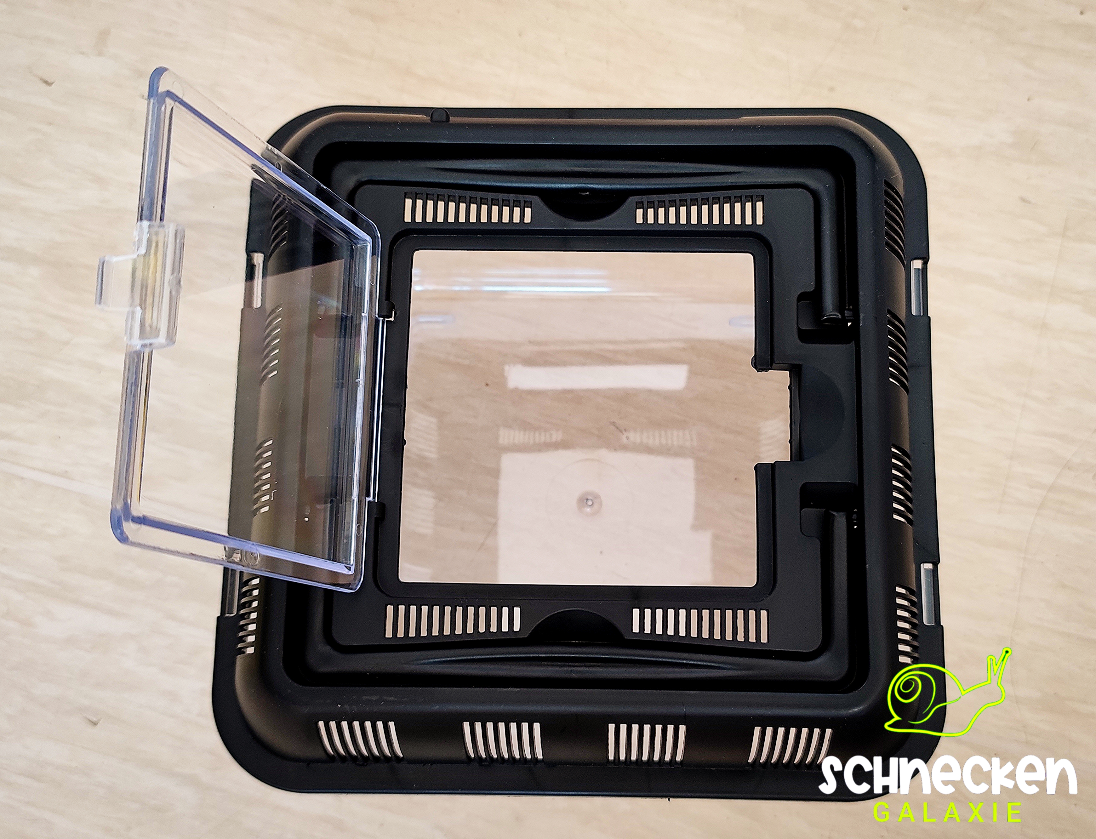 Diese Fauna Box eignet sich gut für die Haltung von Wirbellosen. Durch die große Tür am Deckel, kann man schnell in die Box gelangen. Die Reinigung von der Box ist super einfach, da sich der Deckel auch vollständig von der Box abnehmen lässt.