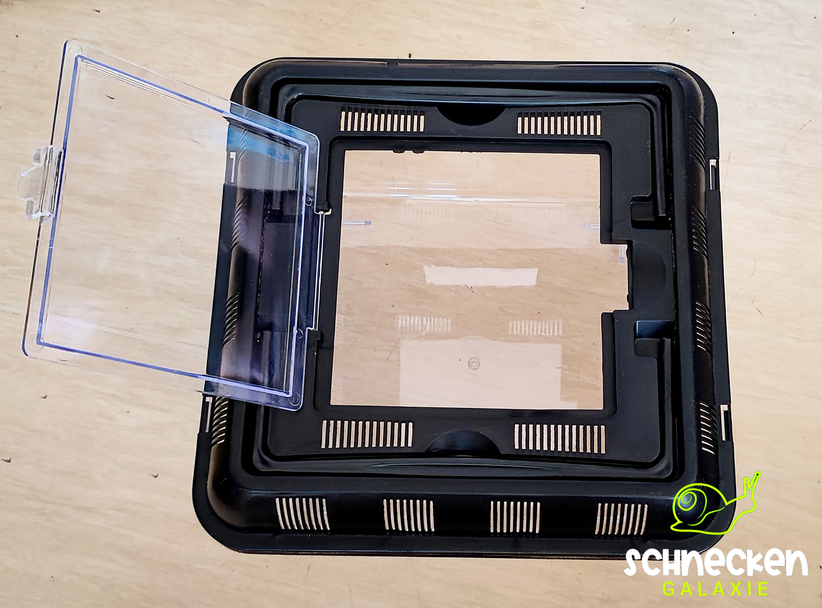 Diese Fauna Box eignet sich gut für die Haltung von Wirbellosen. Durch die große Tür am Deckel, kann man schnell in die Box gelangen. Die Reinigung von der Box ist super einfach, da sich der Deckel auch vollständig von der Box abnehmen lässt.