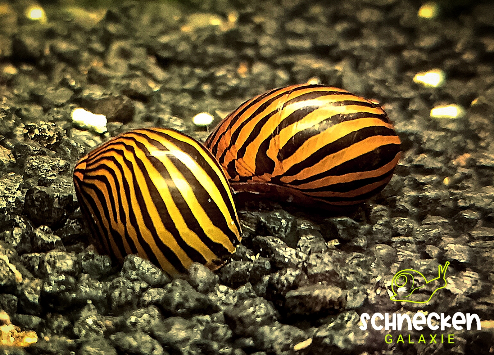 Die Zebra - Rennschnecke ,, Neritina natalensis" gehört zur Familie der Rennschnecken. Sie ist ein hervorragender Algen und Aufwuchsfresser. Sie besitzt ein gelbliches Haus mit feinen schwarzen Streifen. Diese Schnecke ist einfach in der Haltung, kann mit Zwerggarnelen, Fischen und anderen Schnecken vergesellschaftet werden. Das Aquarium sollte Steine oder Wurzeln haben, damit sie sich festhalten und nach Nahrung suchen kann.